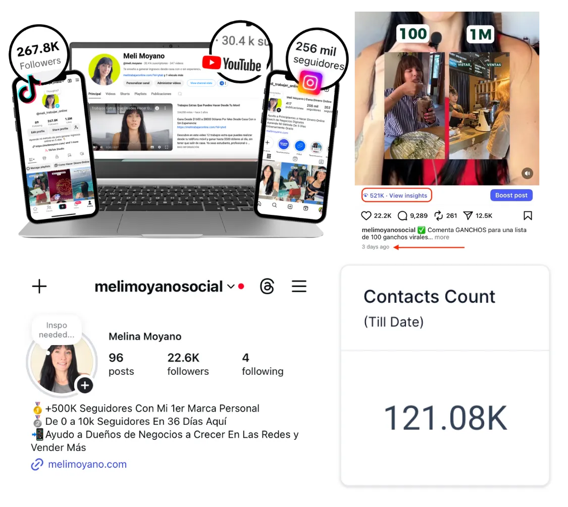Construí mi primera marca personal hasta +500K seguidores totales dominando estrategias de contenido viral y negocios digitales.